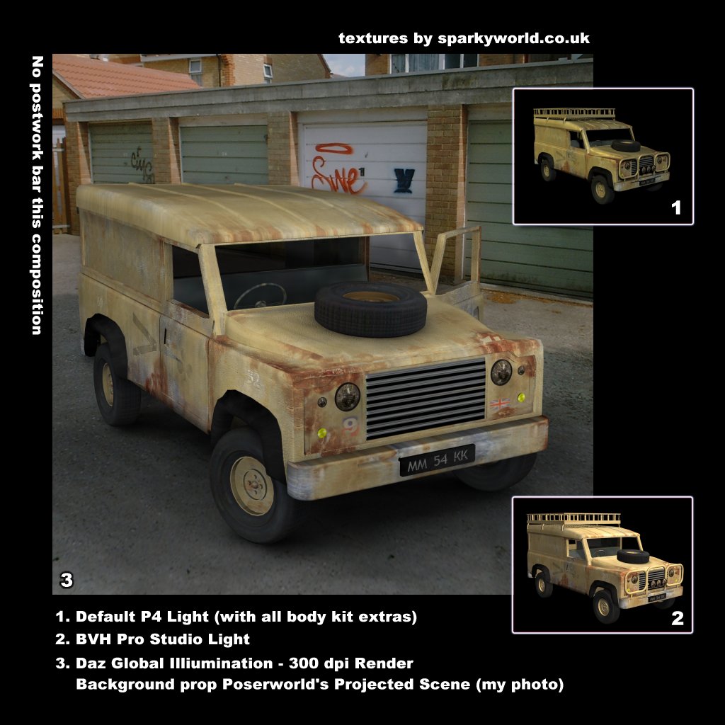 Defend the rights of your favourite oil company with these textures which turn Poserworld's model into a rather beat up British Army landie.